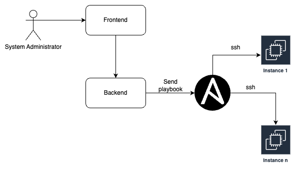 Create a system administration solution that consists of the frontend for user interface and a backend that receive and translate users action into playbooks and send to Ansible to apply to the managed nodes.