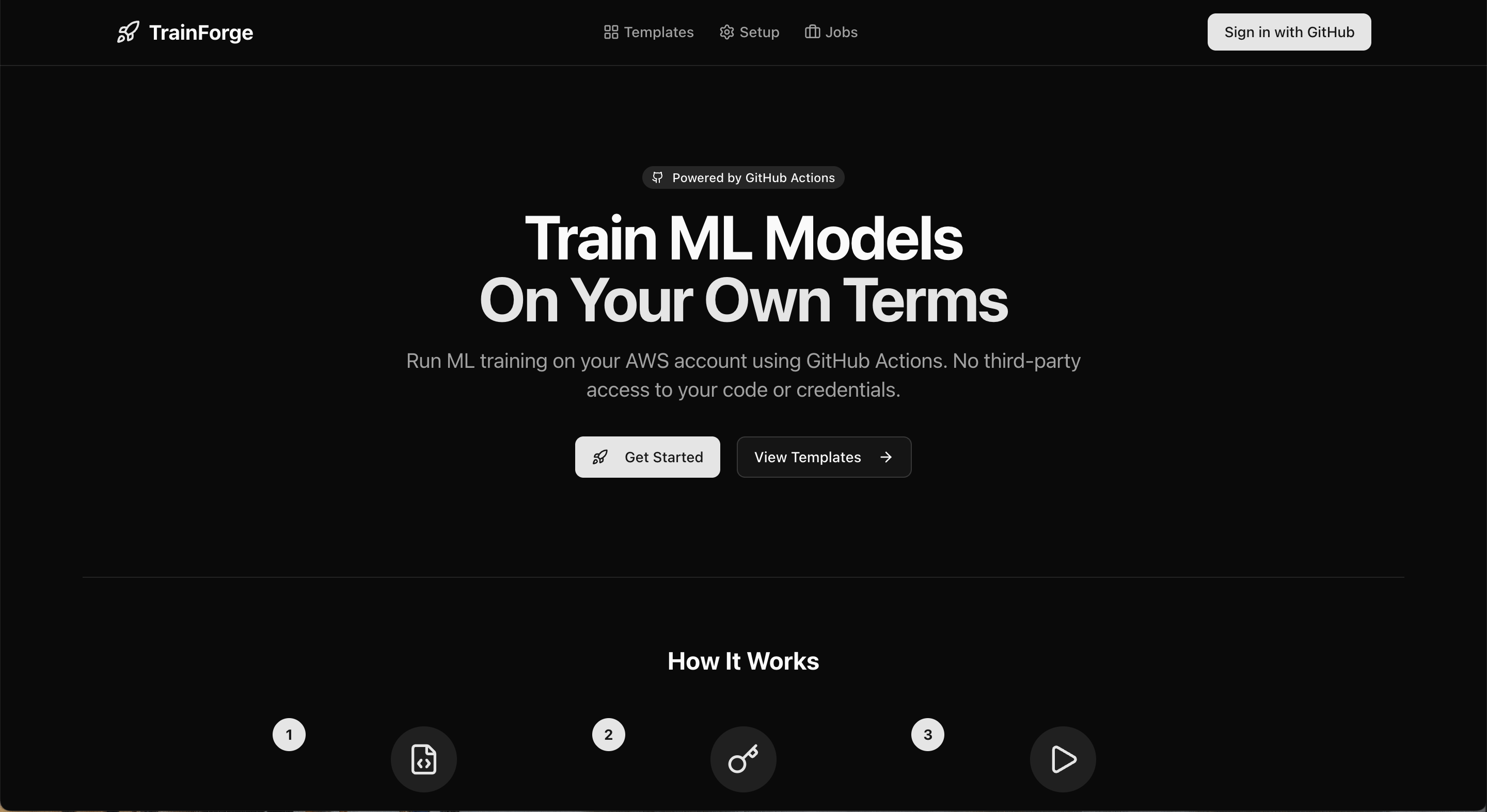 A platform that lets you train ML models in the cloud with one click, but all compute runs on YOUR infrastructure via GitHub Actions. No need to trust third parties with AWS credentials - everything stays in your GitHub and AWS accounts.